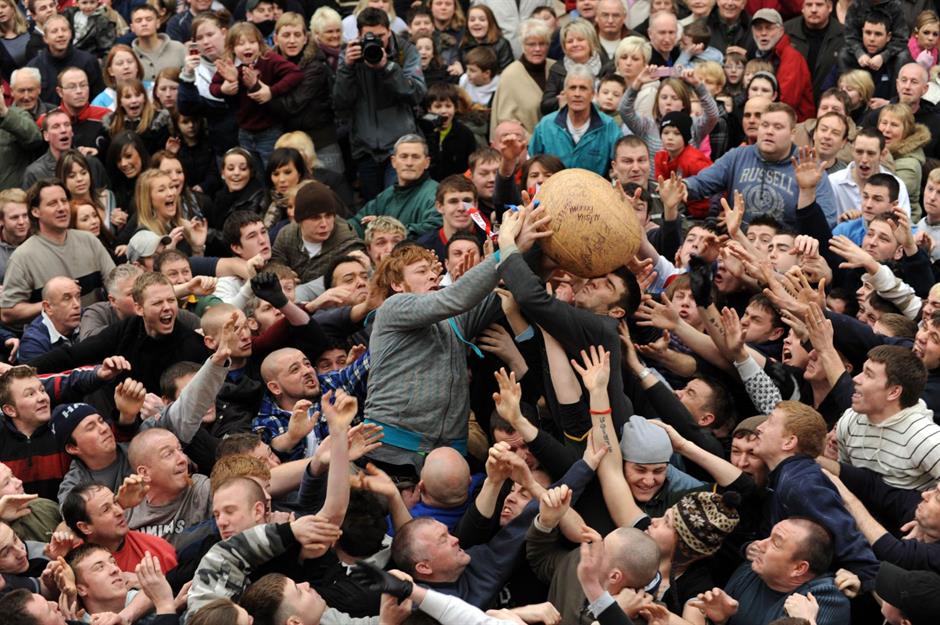 Said to date back to 1199, the game has few rules – just keep the ball on the street – and the person holding it at the final whistle is declared the winner.