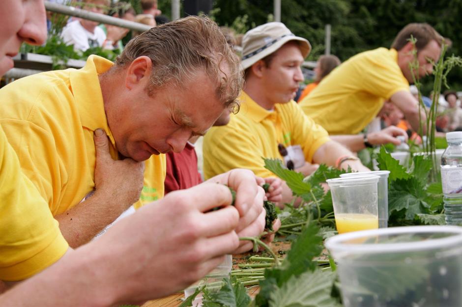 Marshwood in Dorset is home to a prickly tradition with a sting in the tail. At the World Nettle Eating Championship, held at the Bottle Inn, competitors strip and chew through the leaves of stinging nettles for 30 minutes, aiming to devour the most by length of stalk.