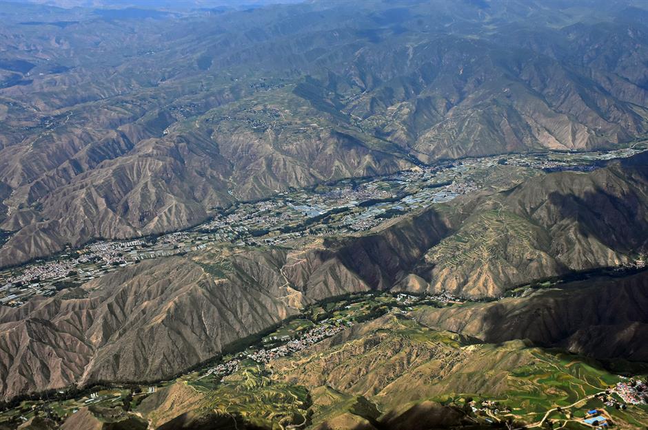 This high-altitude domestic flight from Kunming, in China’s Yunnan Province (pictured), climbs rapidly into thinner air. The approach to Lhasa is especially challenging, and weather here is unpredictable year-round, making this one of the bumpiest routes into Tibet.