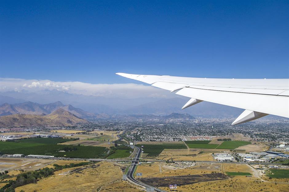 The flight from San Carlos de Bariloche, Argentina to Santiago, Chile (pictured) crosses the Andes – offering spectacular scenery and a bumpy ride. The approach into Santiago often involves flying through narrow valleys with unpredictable weather patterns that keep both pilots and passengers alert.