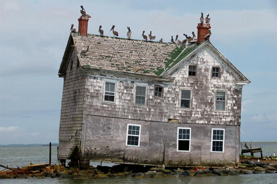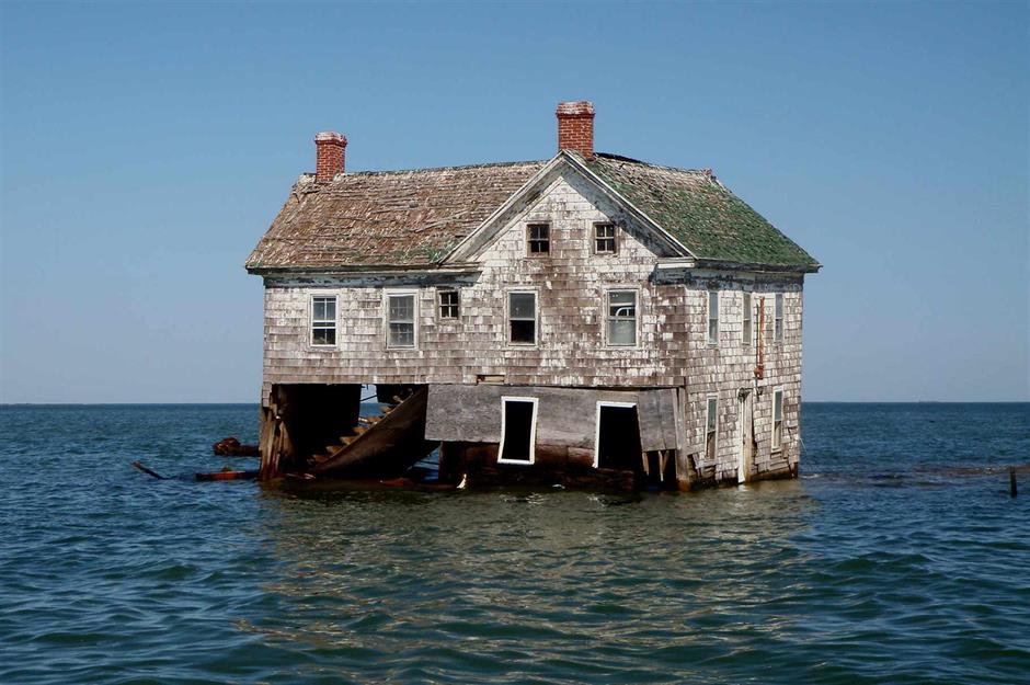 Dernière maison encore debout sur Holland Island, grignotée par l’érosion dans la baie de Chesapeake, dans le Maryland, cette bâtisse délabrée aurait été construite en 1888.