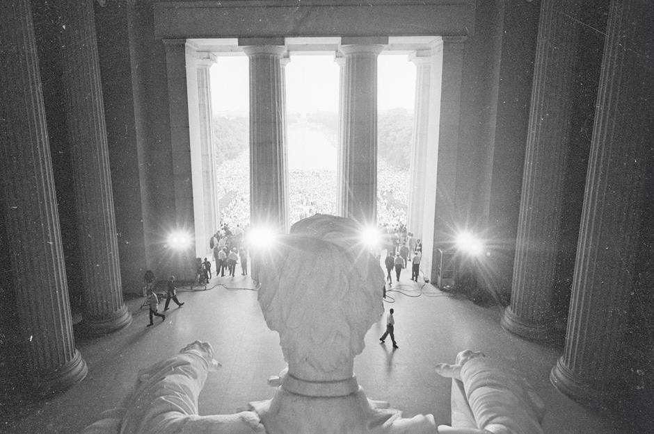 A powerful photograph captures Abraham Lincoln’s view at the Lincoln Memorial on 28 August 1963 – the day Martin Luther King Jr. delivered his iconic 'I Have a Dream' speech.