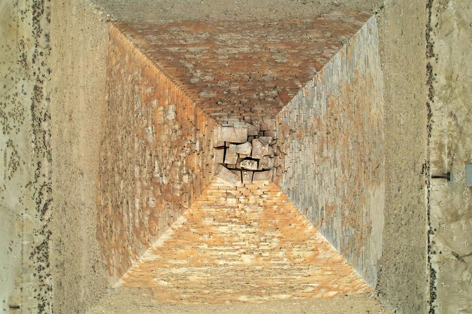 However, tourists don’t usually see this view – captured by drone – showing one of the pyramids from directly above. It offers a strikingly different perspective of the ancient site.