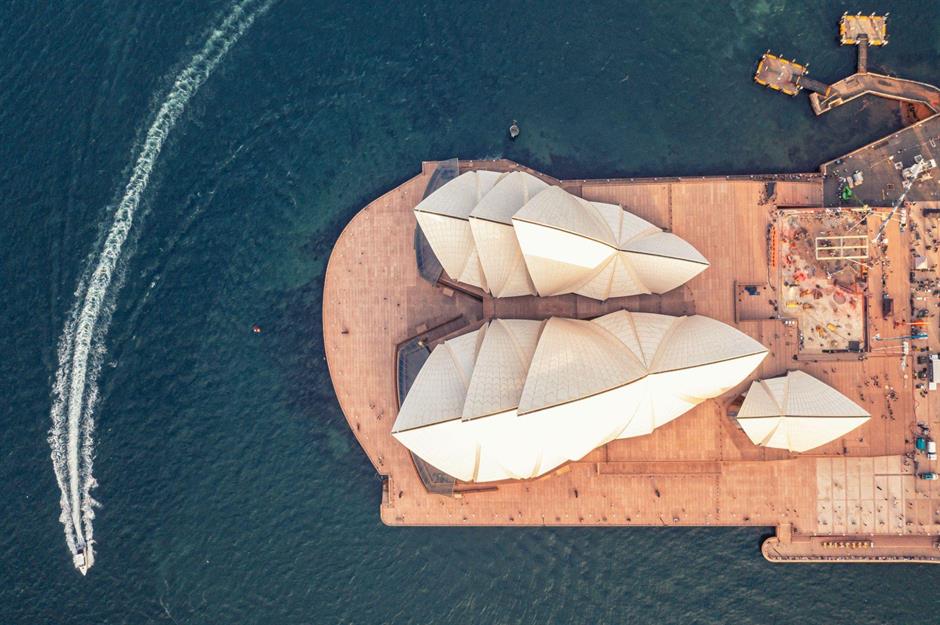 One of the world’s great architectural marvels, Sydney’s Opera House is one of Australia’s most-visited attractions. Most tourists will see the landmark face-on, perhaps while cruising through Sydney Harbour; but an aerial view provides an entirely different perspective. From above, the Opera House’s ‘sails’ appear abstract and geometric – more like a work of art than a functional building.