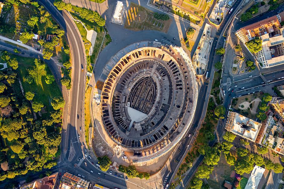 Seen from ground level, the scale of Rome’s Colosseum is impressive – but from above, its position at the heart of modern Rome becomes strikingly clear.