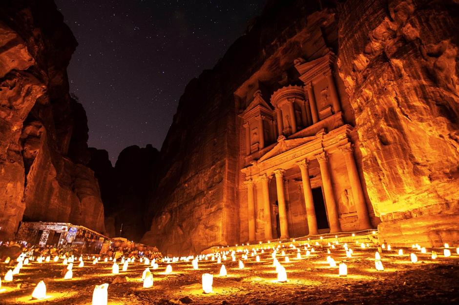 On select evenings, the ancient Nabataean city of Petra becomes an even more breathtaking sight than it does during the day. The enchanting ‘Petra By Night’ experience begins with a walk through the Siq, where over 2,000 candles illuminate the narrow gorge leading to the Treasury (pictured).