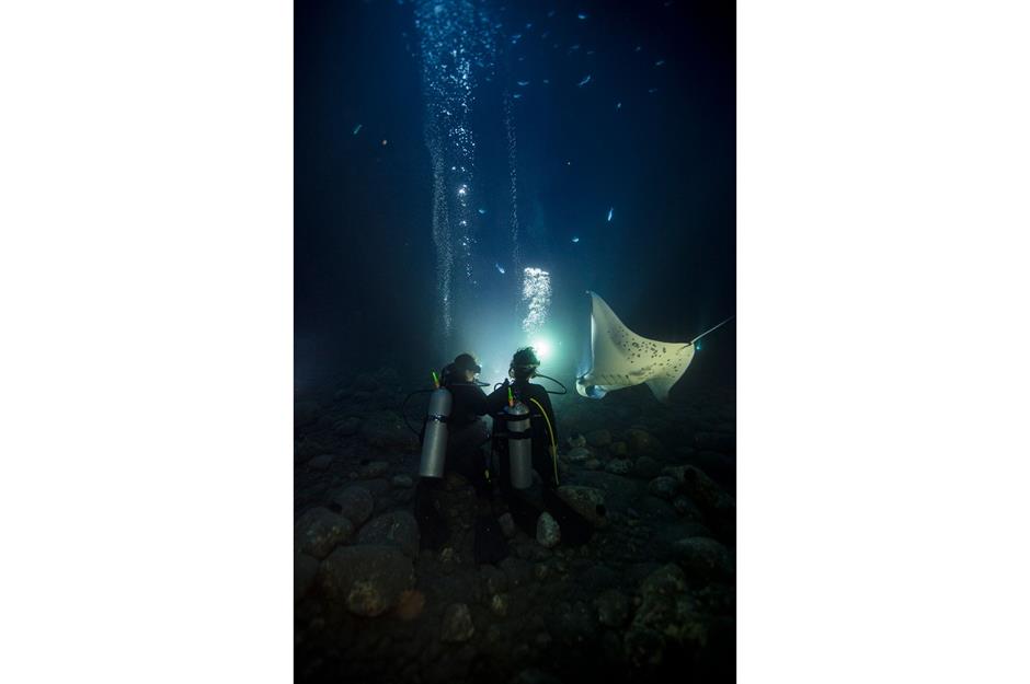 Off the coast of Hawaii’s Big Island, experienced scuba divers can drift down into the inky depths of the ocean for a nocturnal adventure unlike any other. The PADI Pelagic Magic Dive is an otherworldly blackwater diving excursion, revealing mysterious marine creatures as they rise from the abyss in one of the world’s most epic, yet lesser-known, night dive sites.