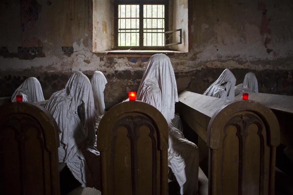 En 2012, el artista local Jakub Hadrava se inspiró en el folclore local para crear 32 fantasmas de yeso a tamaño real que se sientan con la cabeza inclinada en los bancos de la iglesia.