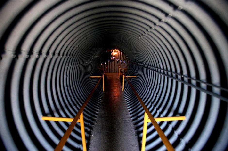 Recouvert de 3,6 mètres de terre ainsi que de couches de béton et de plomb, le bunker est accessible par un tunnel en métal ondulé de 12 mètres, coudé à 90 degrés pour atténuer les effets d’une explosion nucléaire.