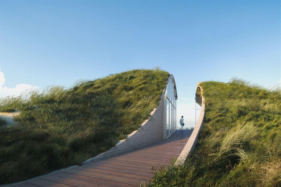 Bien qu’ils soient partiellement enterrés, les espaces de vie de la maison seront clairs et lumineux grâce à d’immenses baies vitrées. Le vitrage permettra d’ouvrir l’intérieur sur la dune tout en offrant une vue imprenable sur la côte.