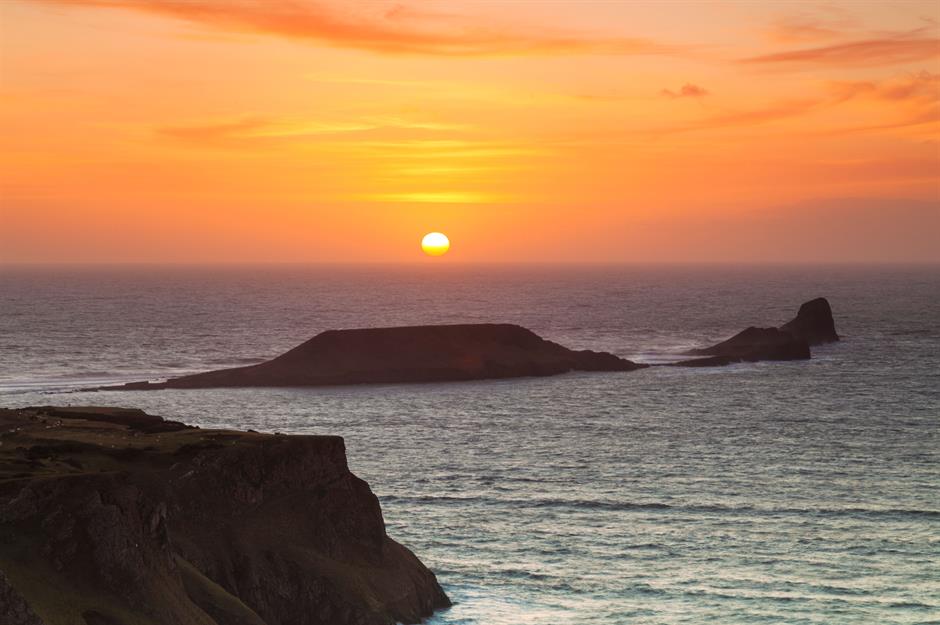 As well as enjoying the spectacular beach at Rhossili Bay, the island of Worms Head is a great place to see the sunset. Only accessible on foot, care must be taken to avoid being stranded during high tides.