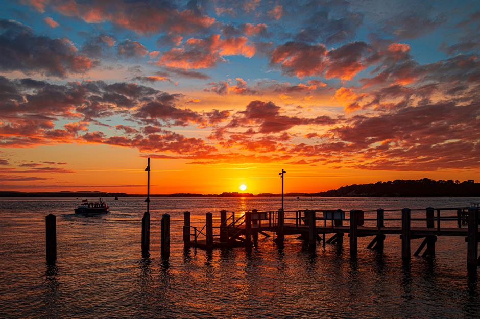 Watching the sun disappear from golden beaches and crystal clear waters is enchanting in itself. And while that's often reserved for paradisial islands such as in the Caribbean, the south coast of England has a pretty good go too. Sunset views across Poole Harbour – the second biggest natural harbour in the world – are simply stunning.