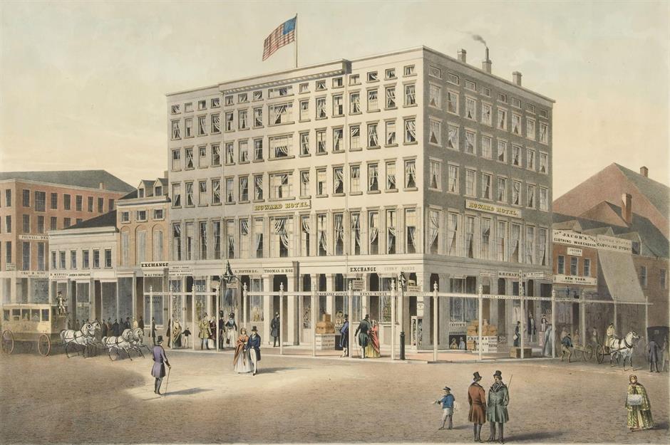 Two years after the Howard Hotel opened in March 1840, President John Tyler stayed there on the day before his marriage to Julia Gardiner Tyler, with the owners locking up the servants to prevent press leaks.