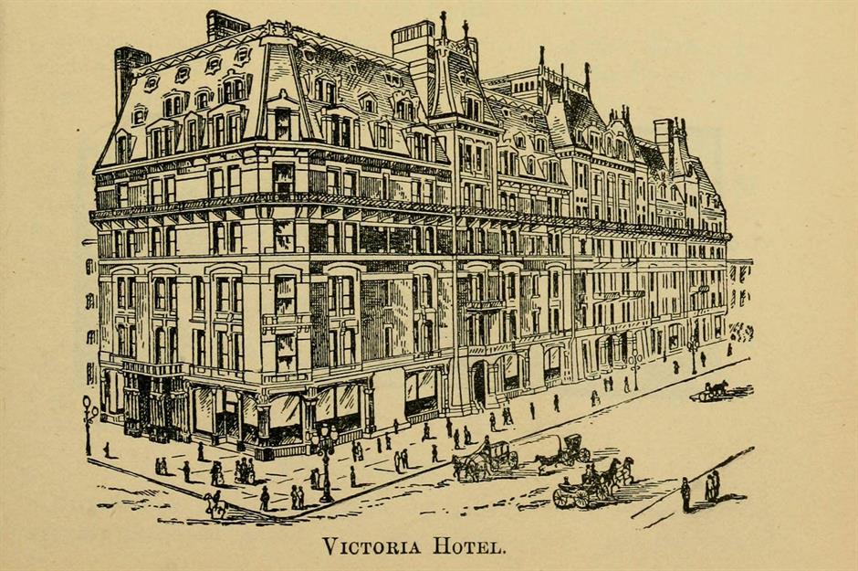 The hotel was built by Paran Stevens in 1877. It was owned by the American Hotel Victoria Company and, in 1911, was redecorated, renovated, and refurnished for $250,000 ($8.5m in today's money). However, the hotel closed its doors three years later and the expensive furnishings were sold at auction the same day. Its demolition made way for an office and loft building.