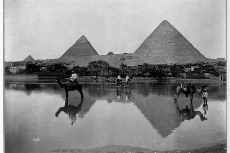 Depuis la décision du gouvernement égyptien en 1975 de développer le tourisme, le site accueille jusqu’à 14 millions de visiteurs chaque année. Cette photo des pyramides date de 1890.