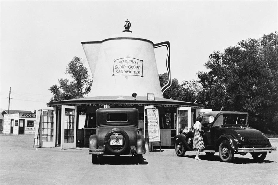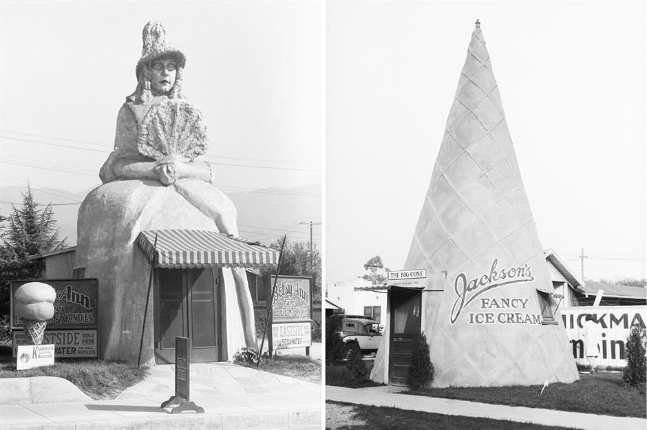 Relatively cheap and quick to build, these whimsical structures were designed to catch the attention of passing motorists during the automobile boom of the early century, with their shapes usually indicating what they were selling. They ended up springing up everywhere across America, from New York to California, and from Texas to Minnesota.