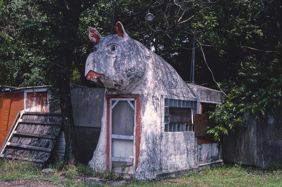 The Pig Stand chain of roadside restaurants was founded in 1921 in Dallas. It thrived over the following decade, serving Tennessee-style barbecued-pork sandwiches at more than 100 locations – including this one, which was derelict by the time it was photographed here in 1982.