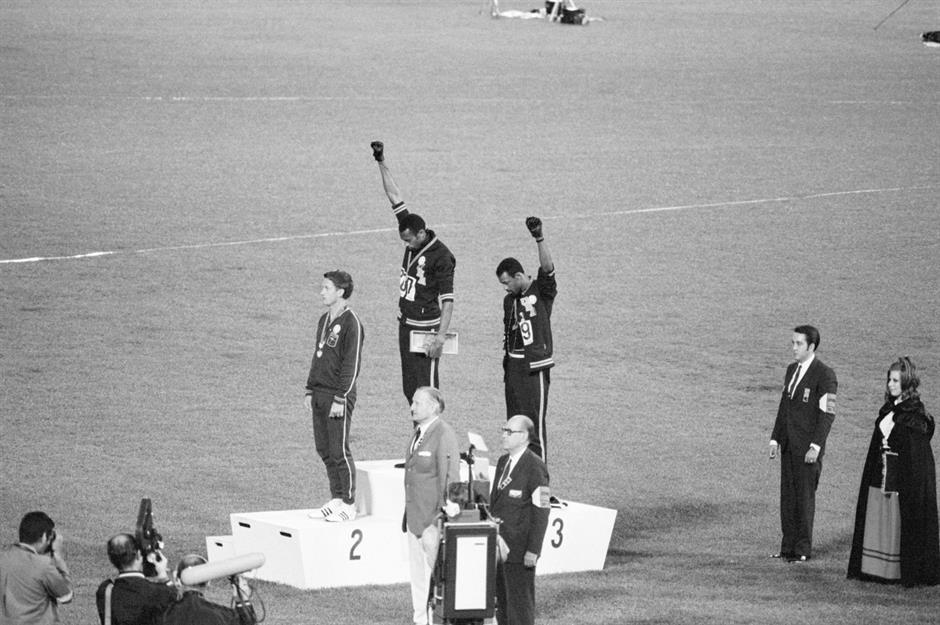 One of the most iconic moments in the history of sport occurred when American sprinters Tommie Smith and John Carlos took to the podium at the 1968 Olympics Games. Winners of gold and bronze in the 200 metres, respectively, they stunned the world by refusing to recognise their nation's flag while raising gloved fists in a Black Power salute.