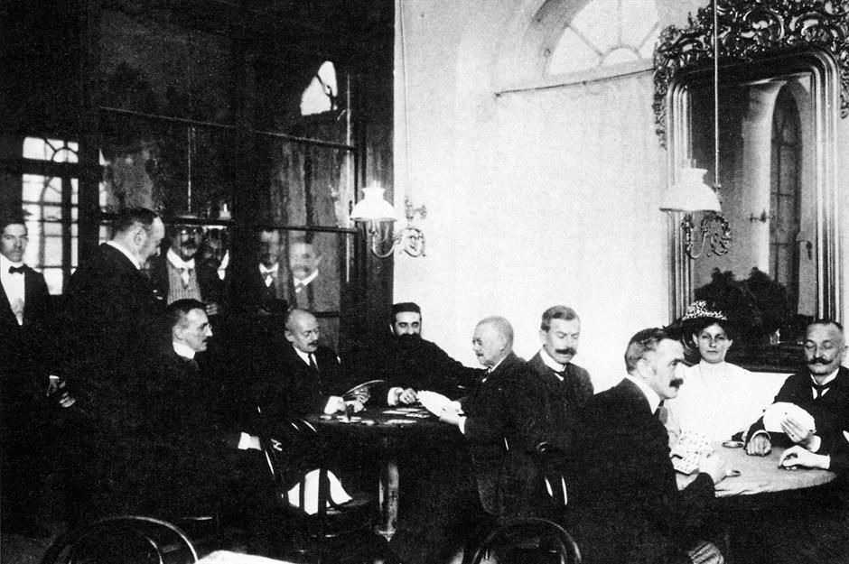 c.1910: Intellectuals gather in Budapest, Hungary