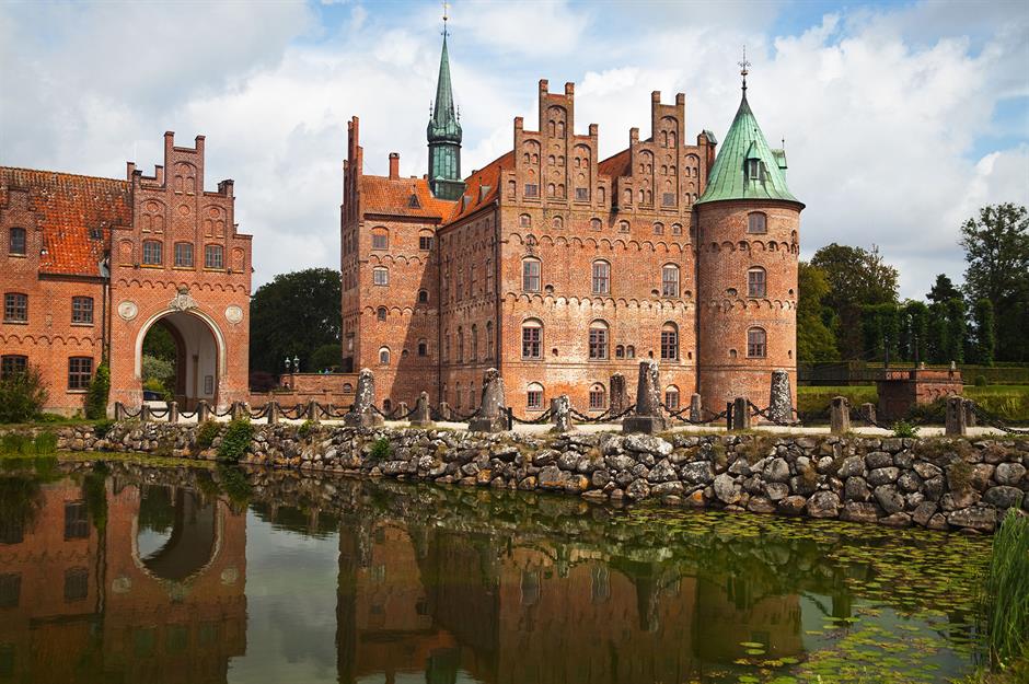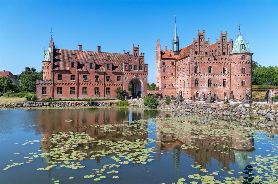 One of a staggering 123 manor houses and castles on the Danish island of Funen, Egeskov Castle cuts an imposing profile – an awesome fortress perched in the middle of a lake, which acts as a defensive moat.