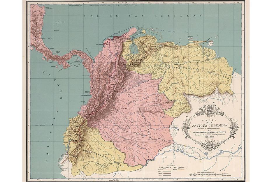 En 1819, l'union nouvellement indépendante de Grande Colombie est créée : elle englobe le Venezuela, la Colombie, l'Équateur et des parties du Pérou. Malgré les efforts de Bolívar, l'union est affaiblie par des divisions internes. Après seulement douze ans, la grande nation est dissoute.