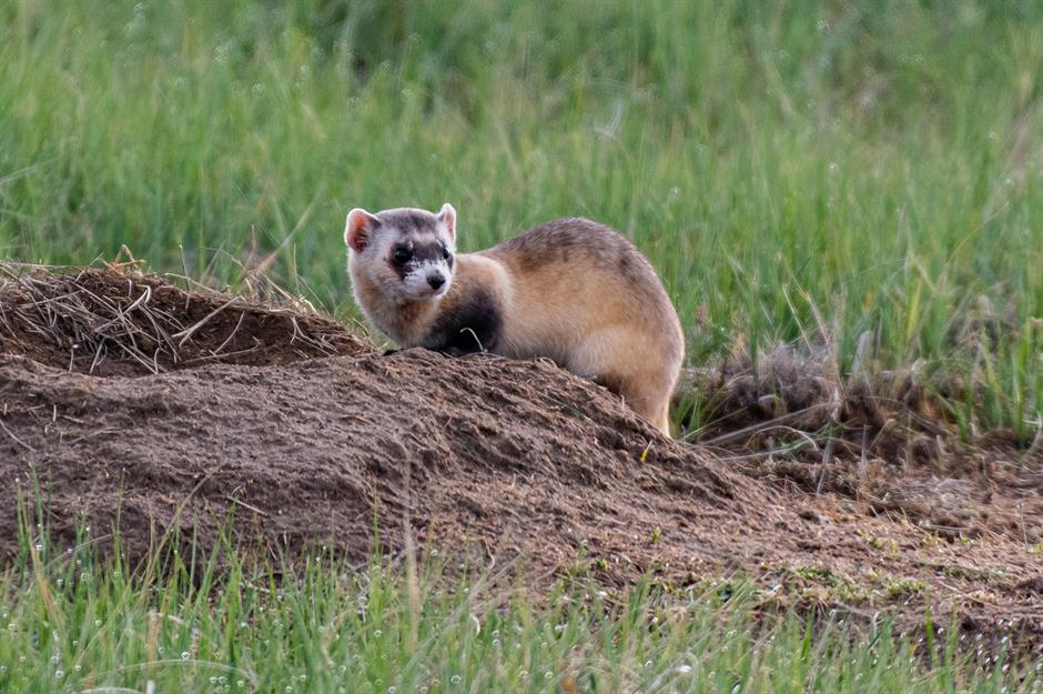Once declared extinct in the wild, the black-footed ferret has made a comeback thanks to captive breeding programs. Today, around 495 survive in the wild, scattered across prairie dog colonies – their main food source – in several western states.