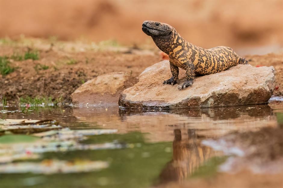 With a name as terrifying as its appearance, the Gila monster is one of the few venomous lizards in the world. Though scarce, it lives in the Sonoran Desert of the Southwest, especially around Saguaro National Park and Organ Pipe Cactus National Monument in southern Arizona. Your best chance of seeing one is on warm spring evenings in the foothills, but give this slow-moving reptile plenty of space.