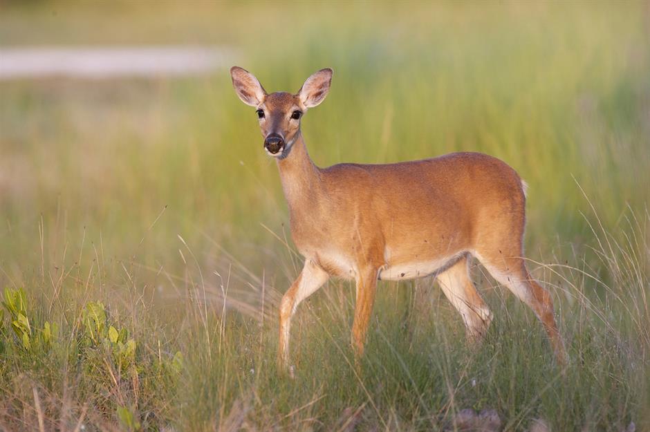 The Key deer, a pocket-sized cousin of the white-tailed deer, is found only in the Lower Florida Keys and ranks among the rarest deer in North America. Look for them on Big Pine Key, No Name Key, and nearby islets, especially at dusk around freshwater holes in the National Key Deer Refuge.