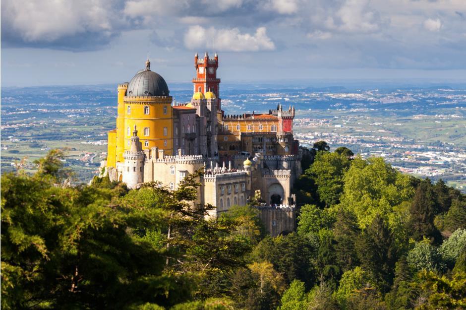 À une heure de Lisbonne se trouve l’un des palais les plus colorés du Portugal, voire du monde. Ce magnifique complexe situé au sommet d’une colline a été construit au XIXe siècle sur les ruines d’un ancien monastère par le roi Ferdinand II pour servir de palais d’été à la famille royale. Il présente un mélange éclectique de styles architecturaux, allant du néogothique au néo-islamique.
