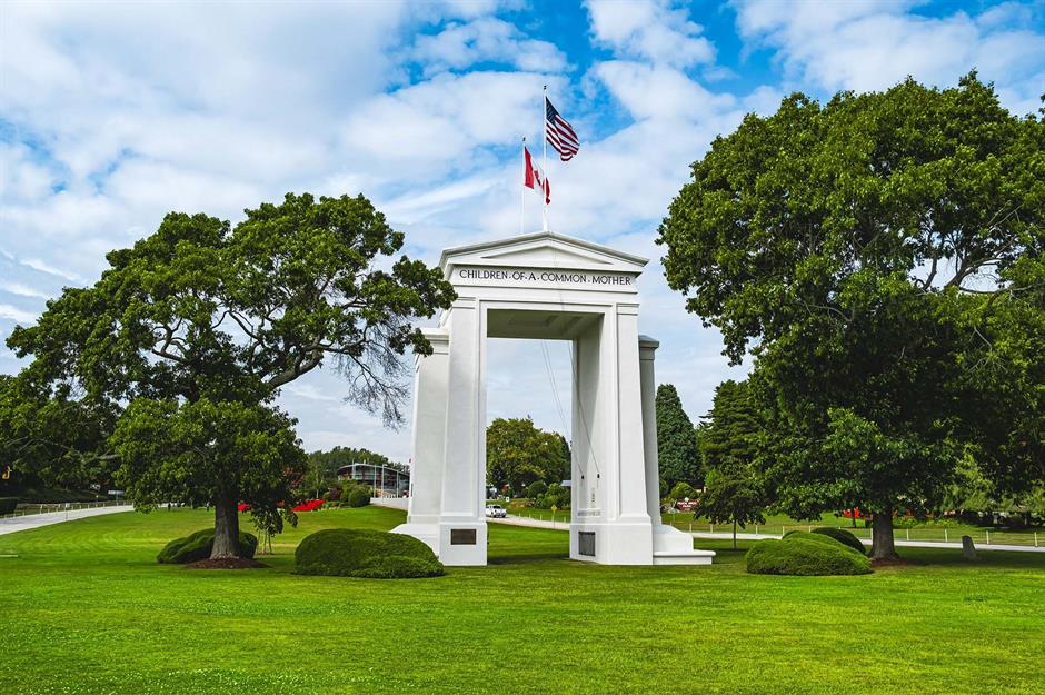 Built in 1921, the Peace Arch straddles the Canada-USA border between Surrey, British Columbia and Blaine, Washington. It symbolises over two centuries of peace since the War of 1812 between Britain and America.