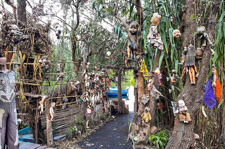 Among the man-made isles, known as chinampas, is a particularly unnerving sight. La Isla de las Muñecas, which means 'the Island of the Dolls', is one of the city's eeriest and most mysterious landmarks. Approaching the shoreline, visitors are greeted by an army of dishevelled dolls strung up among the trees – the island's only inhabitants.