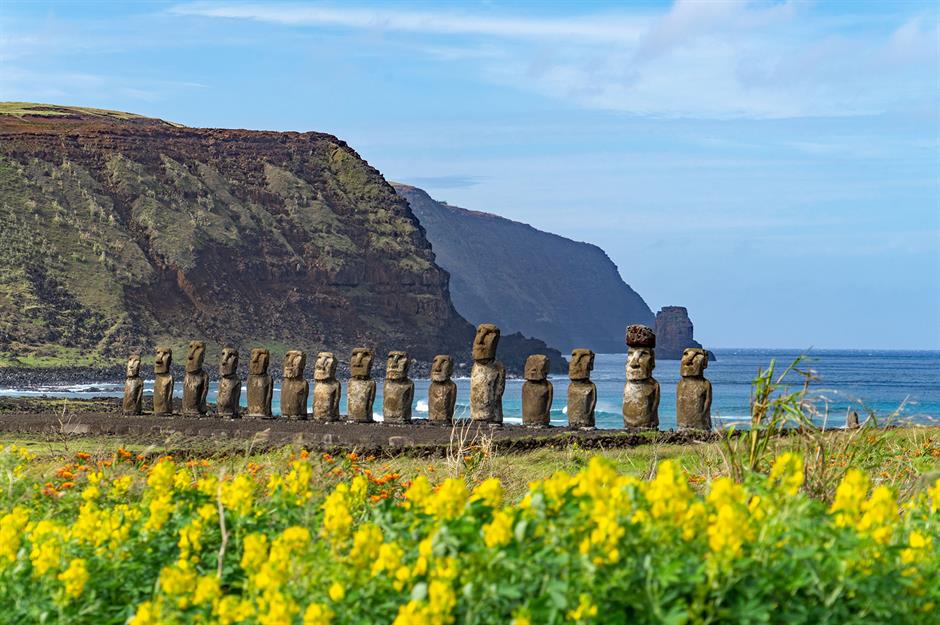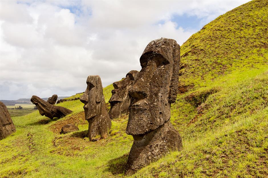 Easter Island has more than 900 moai statues, thought to have been created by the Rapa Nui people between 1250 and 1500. The monoliths, which depict human figures, are staggeringly heavy and weigh up to 86 tonnes. While it isn't clear how they were transported across the island from the quarry where they were carved, their angular bases suggest they may have been designed to rock forward in a side-to-side motion, almost like walking, with the help of guide ropes.