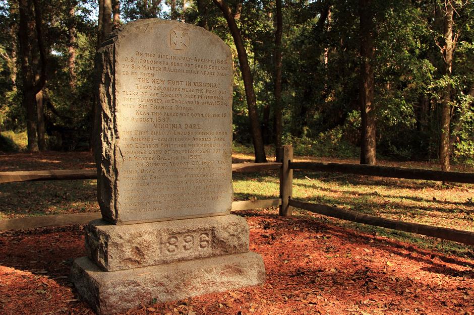 Given the message left behind, one of the more plausible explanations is that the group relocated to Croatoan, as White had suspected. This monument on Roanoke is dedicated to the colonists and the birth of White's granddaughter, Virginia Dare.