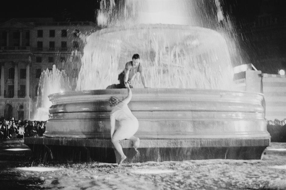 This photo captures a man and woman celebrating the result in one of Sir Edwin Lutyens’ fountains in Trafalgar Square. Considered by some to be a victory for youthful dynamism, much of the election was fought in the glare of the television spotlight.