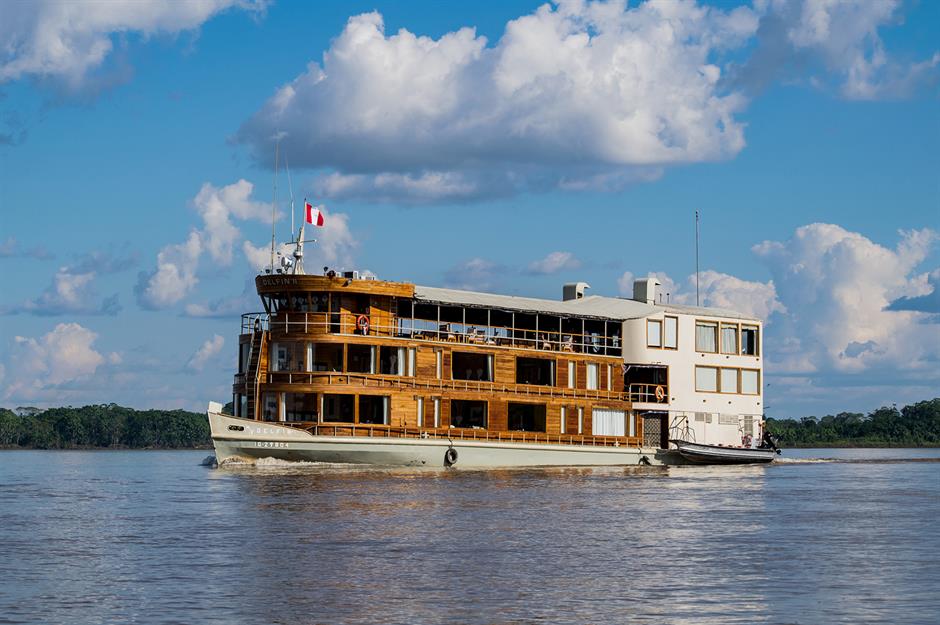 Options range from luxury vessels like this one, The Delphin, to more budget-friendly boats. Cruises typically depart from Iquitos and last four to seven days. It's a serene experience ideal for nature lovers and slow travel enthusiasts.