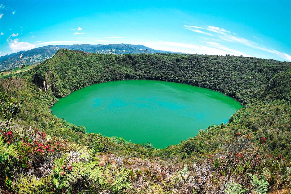 Lake Guatavita is famed as the origin of the El Dorado legend. The Muisca people performed gold-offering rituals here, with their chief – covered in gold dust – diving into the lake while attendants threw treasures into the water.