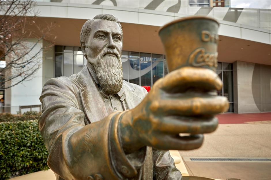 The city still celebrates its most famous creation at the World of Coca-Cola museum: part shrine, part history lesson, and featuring a statue of the iconic drink's creator offering up a glass of the brown stuff (pictured).