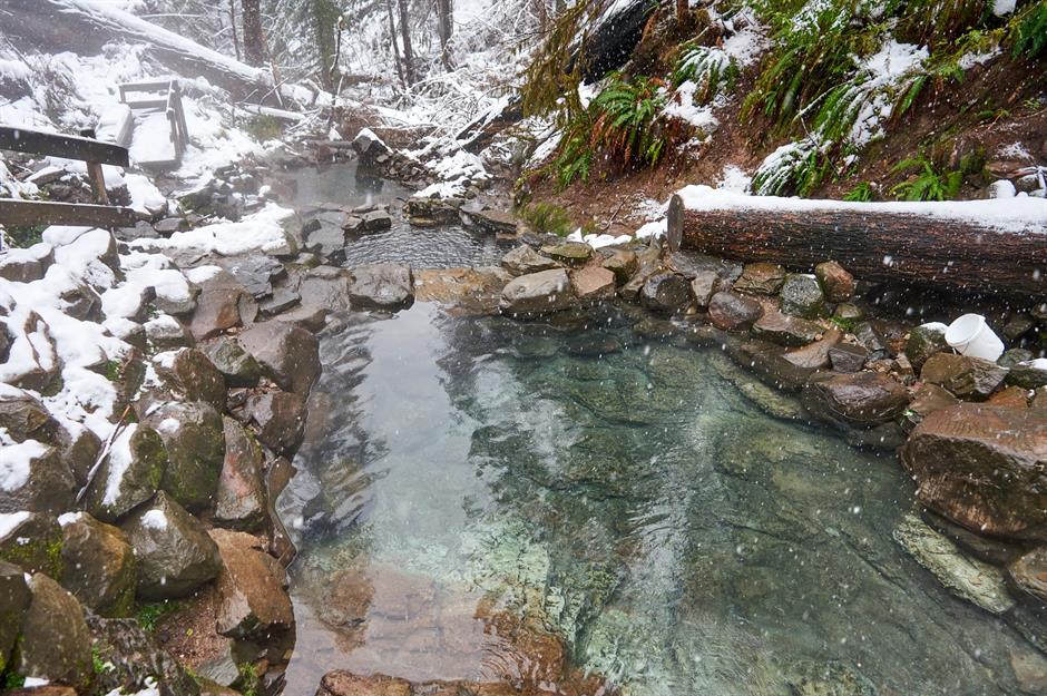 Deep in the Willamette National Forest, Terwilliger offers a sequence of terraced stone pools surrounded by mossy trees and constant birdsong. The water flows hottest at the top, cooling slightly as it descends through each pool.