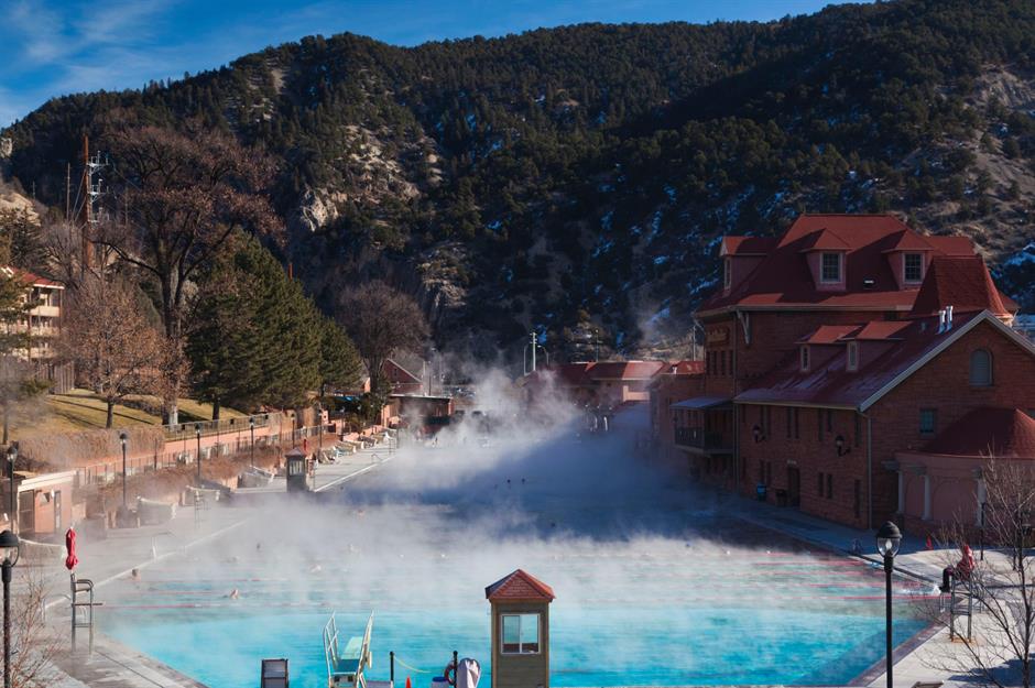 One of the largest mineral hot spring pools in the world, Glenwood has drawn visitors since 1888. The main pool is more like a warm lake, stretching over 400 feet, and also features a separate therapy pool. The resort includes a lodge, spa, and water slides in summer, and while day passes are available, staying on-site grants early access.