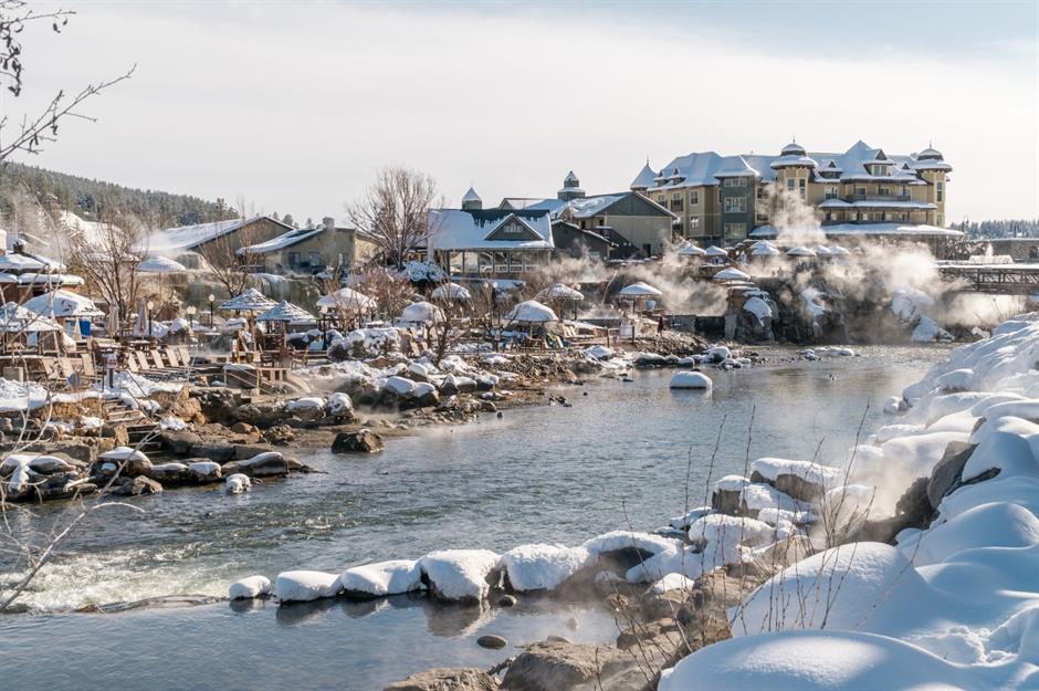 Home to the world’s deepest geothermal hot spring, Pagosa Springs offers both wild and resort-style soaking options along the San Juan River. The Springs Resort (pictured) is the most established, featuring over 50 pools, many with river views.