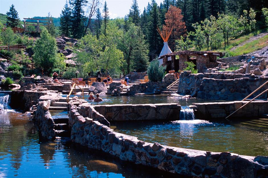 Hidden in the forest outside Steamboat Springs, Strawberry Park features rustic stone pools with mountain scenery. The pools, ranging in temperature from cool to very hot, sit beside a fast-flowing creek, and the site is only reachable via a steep dirt road – making four-wheel drive or shuttle transport mandatory in winter.