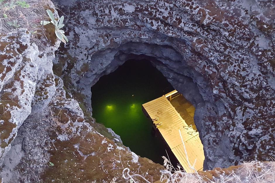 Rising from the ground like a limestone beehive, this natural crater in Midway, about an hour from Salt Lake City, hides a pool of clear, mineral-rich water that stays around 95°F all year. Deep enough for scuba diving, snorkeling, or simply floating, it offers a rare way to bathe inside the earth itself.