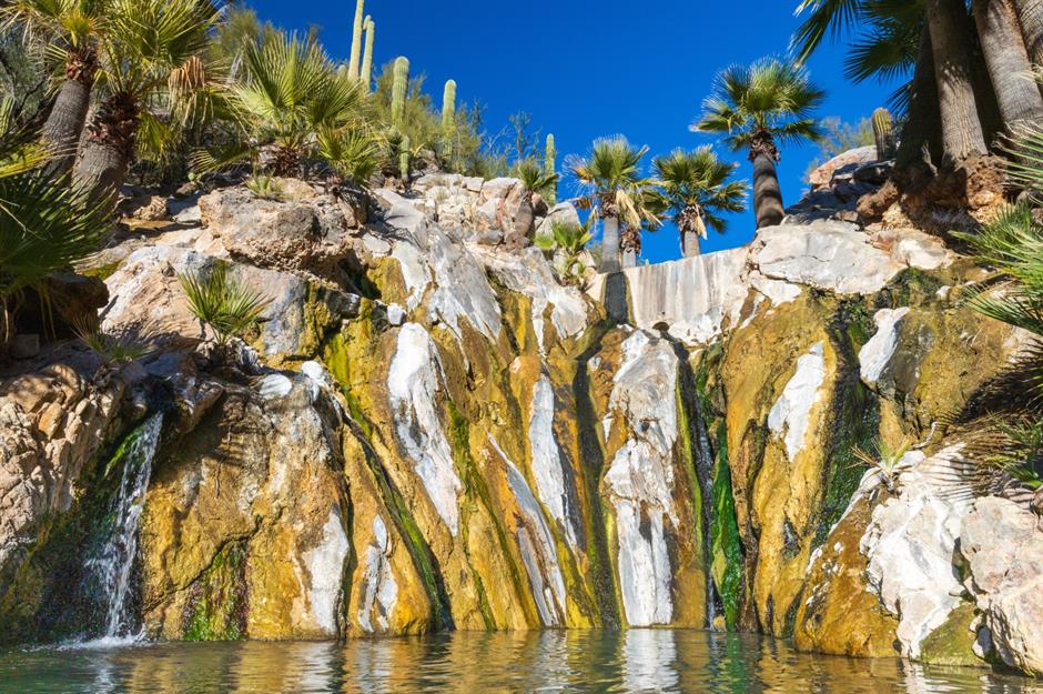 Set in the Sonoran Desert, north of Phoenix, Castle Hot Springs is one of the most luxurious places in the US to bathe in geothermal water. The springs have been used for centuries and now feed three emerald-blue soaking pools framed by palm trees and jagged mountains.