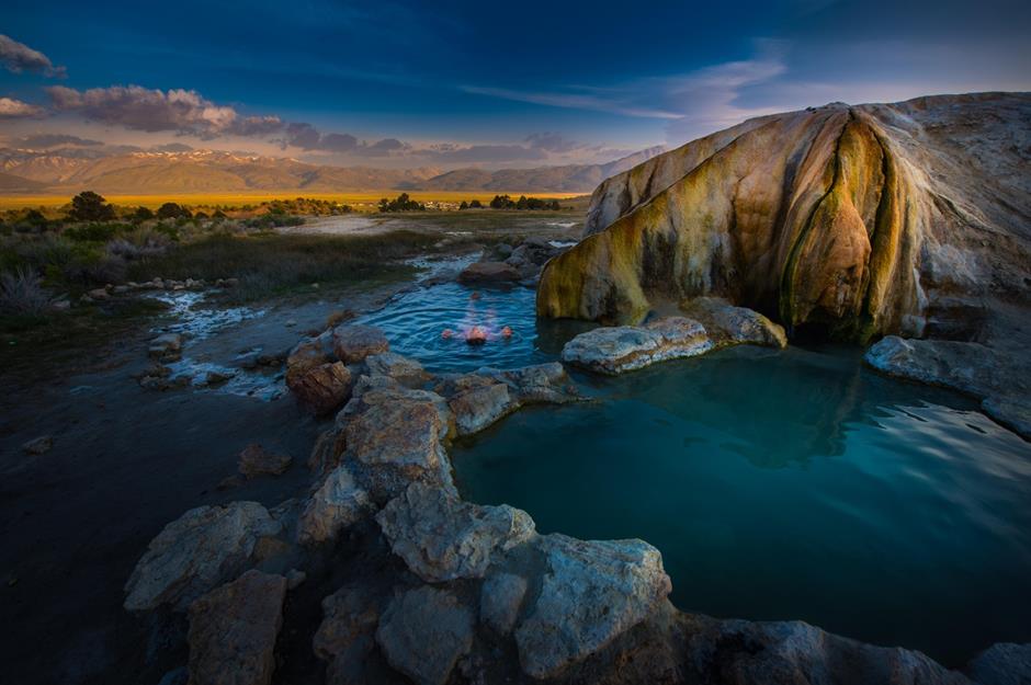 Just outside Bridgeport in the Eastern Sierra, Travertine is a collection of rustic pools overlooking snow-capped mountains and high desert –and bags the top spot on this list. The springs are free to access, down a rough dirt road that can become impassable in winter.