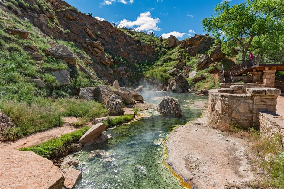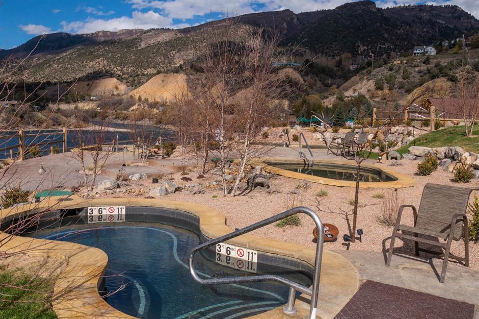 Overlooking the Colorado River, Iron Mountain offers a polished but peaceful soak. A whopping 31 mineral pools sit at varying temperatures, with views across Glenwood Canyon and occasional trains passing below.