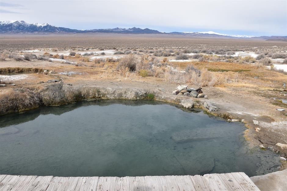 The springs sit on Bureau of Land Management land, so soaking is free and no booking is needed. There are no facilities, only desert, sagebrush, and views of the Toquima Range in the distance.