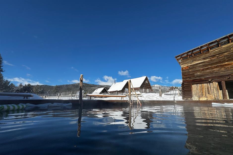 Just north of Yellowstone National Park, Chico Hot Springs combines Western charm with mineral-rich waters. Established in 1900, the resort features two open-air pools: a large, warm swimming pool and a smaller, hotter soaking pool.