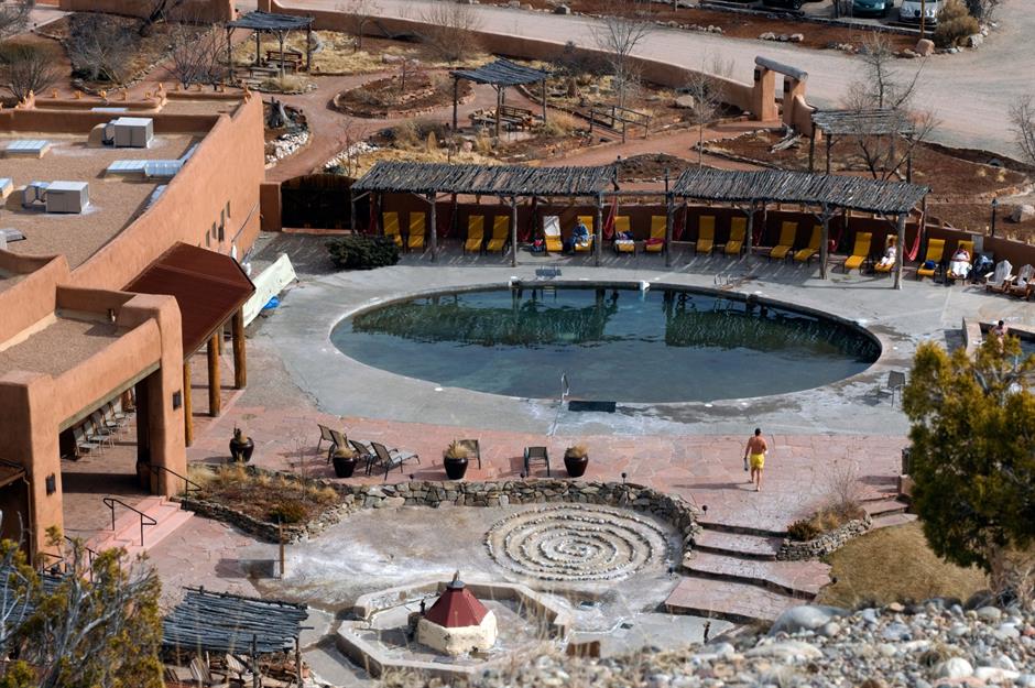 One of the oldest health resorts in the country, Ojo Caliente combines natural desert beauty with a spa-like atmosphere. Set among sandstone cliffs and adobe buildings north of Santa Fe, it’s one of the few places in the world where four distinct types of mineral water emerge in one location, each believed to offer different health benefits.