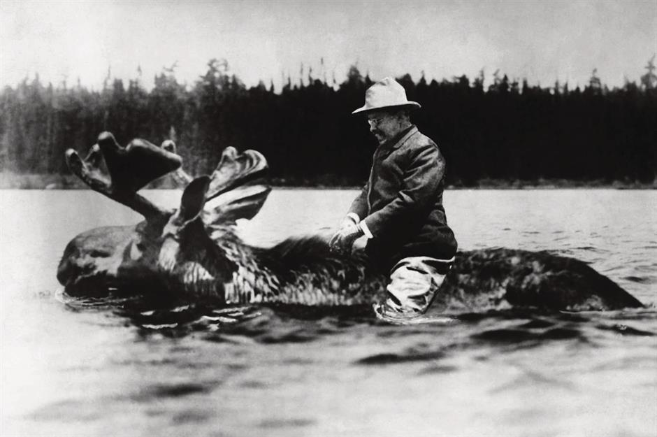 In an early form of photo manipulation, however, the shot was not real. Instead, a snap of Roosevelt in the saddle of a horse had been cut out and pasted onto a riderless moose as it swam across a lake.
