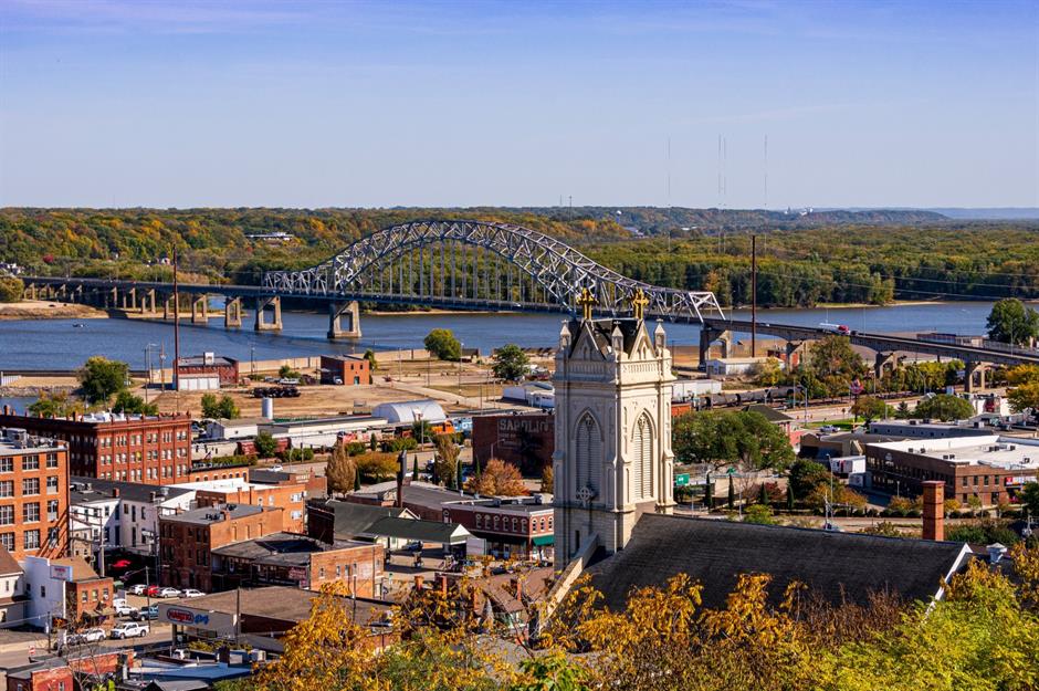 Clinging to the bluffs above the iconic Mississippi River, Dubuque is one of Iowa’s most scenic towns. Its grand architecture and riverside trails are a charming mix of small-town warmth and sweeping views of America’s mightiest waterway.